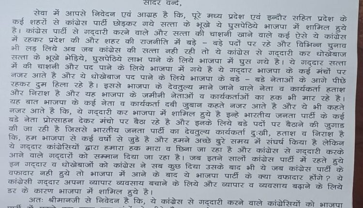 तो साथ ही आयातित दुम हिलाने वाले पूर्व कांग्रेसियों पर भी निशाना,भूखे भेड़ियों को मत दो भाजपा में स्थान।