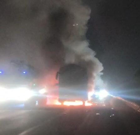 इंदौर से पुणे रवाना हुई, इंटरसिटी ट्रैवल्स की बस हुई आग के हवाले,आठ यात्री घायल,दो गंभीर।