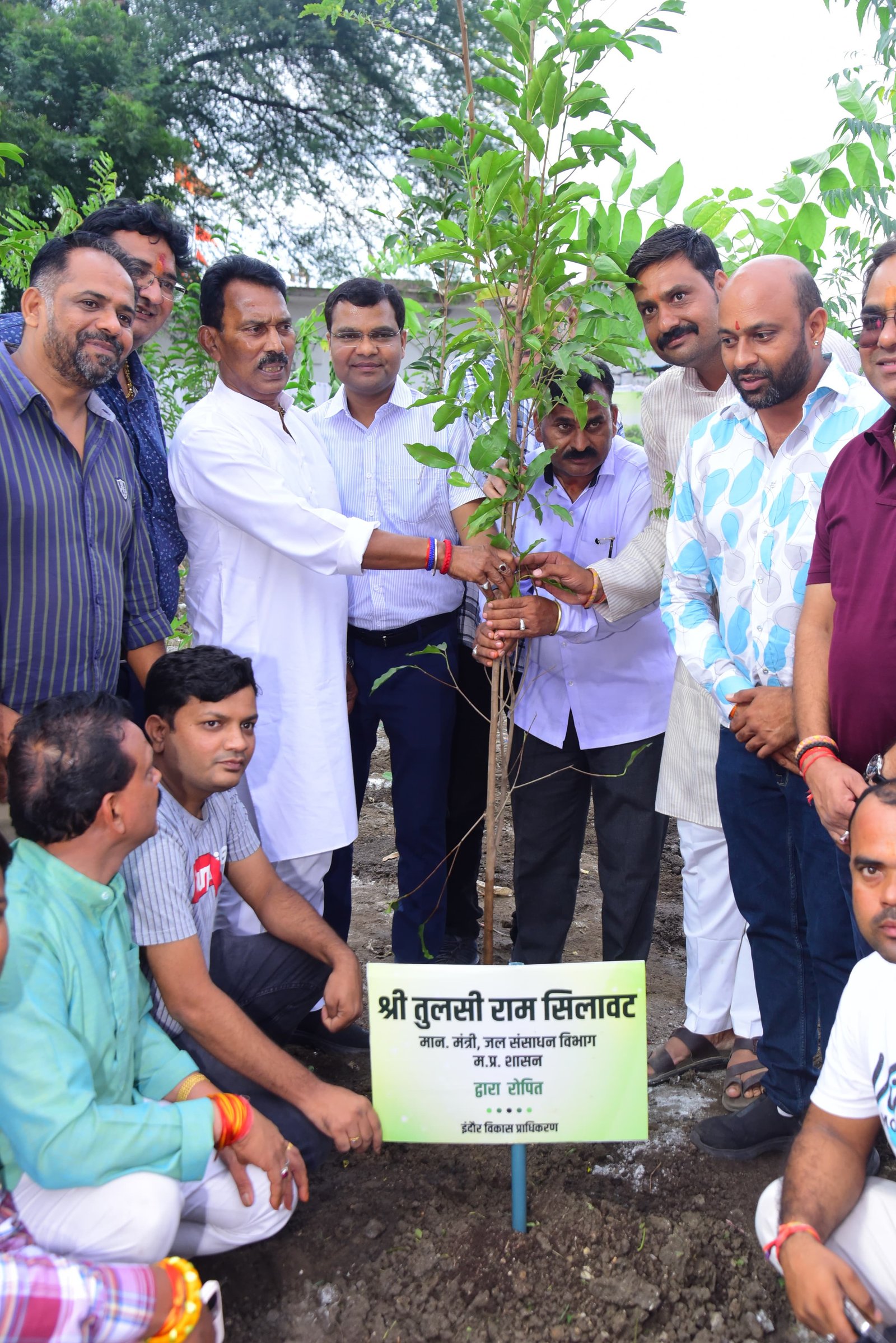 इंदौर विकास प्राधिकरण द्वारा स्कीम 169 MR 10 पर आयोजित सादगीपूर्ण माहौल में कैबिनेट मंत्री तुलसी सिलावट,भाजपा नगर अध्यक्ष सुमित मिश्रा,जिला अध्यक्ष श्रवण सिंह चावड़ा, पद्मश्री भालू भौंडे,पद्मश्री जनक पलटा,IDA अध्यक्ष और संभागायुक्त दीपक सिंह,IDA सीईओ आर पी अहिरवार,सहित उपस्थित सभी जनसमुदाय ने पौधारोपण किया।