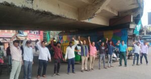 पटेल ब्रिज हुआ जर्जर,कांग्रेसियों में जिम्मेदारों को जगाने के लिए मानव श्रृंखला।