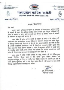 दरअसल पीसीसी के उक्त पत्र जो महामंत्री संजय कांबले के द्वारा जारी किया गया हैं। कांबले जीतू पटवारी के काफी ज्यादा करीबी माने जाते हैं। उनके इस पत्र में सोशल मीडिया पर व्यक्त की गई कांग्रेसियों को लेकर पीसीसी चीफ जीतू पटवारी, मध्यप्रदेश नेता प्रतिपक्ष उमंग सिंघार,के हवाले से 24 घंटे का समय निर्धारित किया गया हैं। उसके बाद ऐसे कांग्रेसियों पर कार्यवाही करने तक की बात कहीं गई हैं।