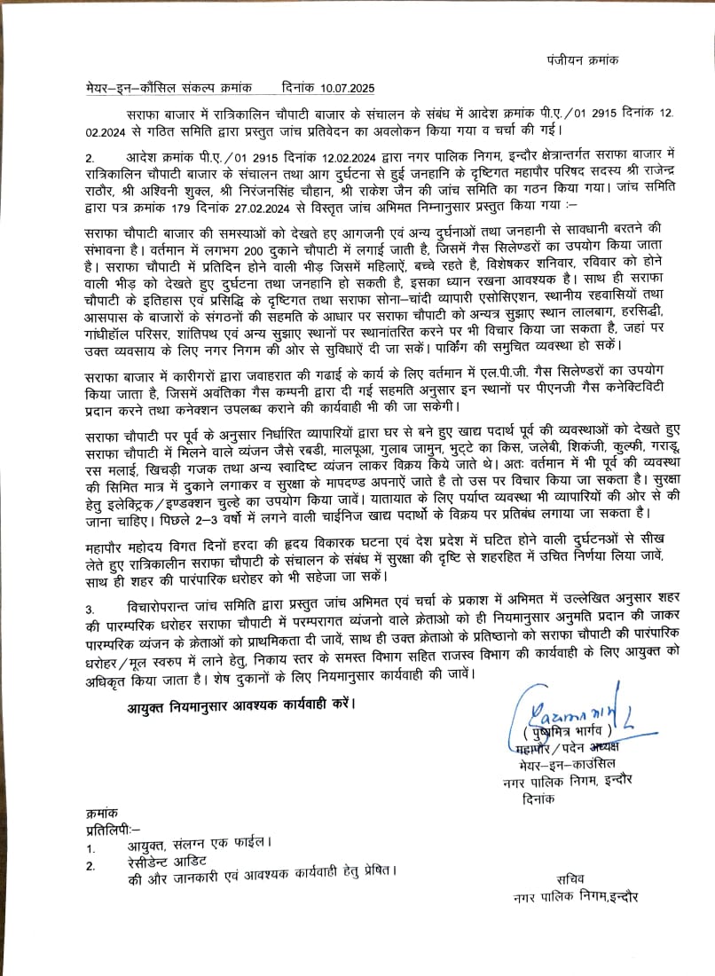 सराफा चौपाटी मामला,निगम जांच समिति रिपोर्ट को घुमा फिराकर किया जा रहा पेश,पारंपरिक दुकानों पर जांच समिति को भी नहीं कोई पेंच।