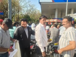 पेट्रोल पंपों पर लंबी लंबी लाइनें,इधर कांग्रेसी पहुंचे ठंडा पिलाने।