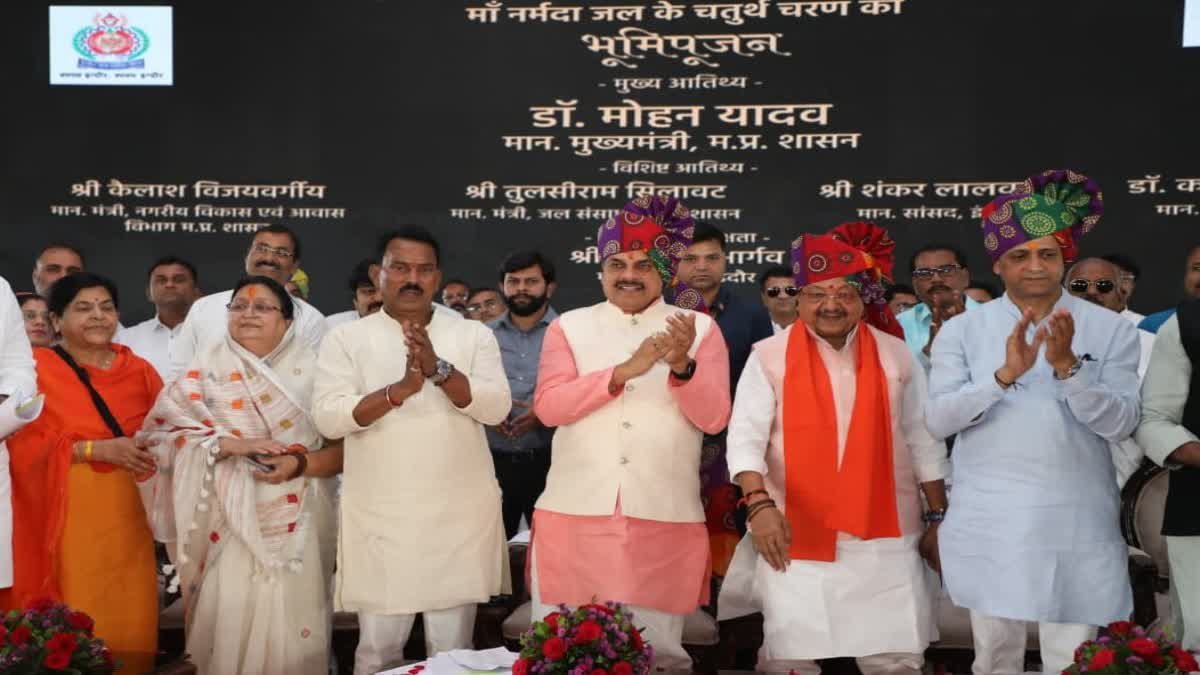 इंदौर: मां नर्मदा प्रदेश की जीवनरेखा है और उनके आशीर्वाद से मध्य प्रदेश में विकास की धारा बह रही है. ये बातें आज रविवार को मुख्यमंत्री डॉ. मोहन यादव ने इंदौर में नर्मदा के चौथे चरण के भूमि पूजन के अवसर पर कहीं. कार्यक्रम के दौरान मुख्यमंत्री ने इंदौर को पेयजल व्यवस्था के सुदृढ़ीकरण के लिए मां नर्मदा जल के चतुर्थ चरण के तहत अमृत 2.0 योजना के अंतर्गत 1356 करोड़ रुपये के विकास कार्यों का भूमि पूजन किया.