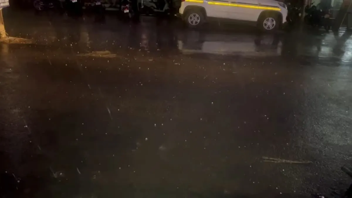 सागर: मध्य प्रदेश के सागर जिले में बीती रात तेज हवा के साथ बारिश और ओलावृष्टि हुई. अचानक से एक बार फिर मौसम ने करवट ली और आसमान में बिजली कौंधने लगी. इसके बाद तेज गरज चमक के साथ ओलावृष्टि शुरू हुई. इस दौरान नगर की बिजली गुल हो गई और अंधेरा पसरा रहा. चने के दाने बराबर ओले गिरने से वाहन थम गए और लोग यहां वहां शरण लेते दिखाई दिए. तेज वर्षा और ओलावृष्टि से सड़कों पर पानी बह निकला. वहीं खिमलासा थाना क्षेत्र के करमपुर ग्राम पंचायत में बिजली गिरने से पिता और नौ माह की बेटी मामूली रूप से झुलस गए.