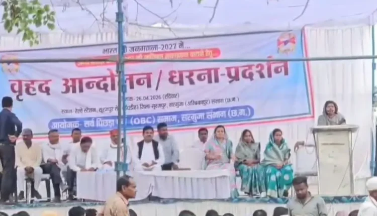 सूरजपुर: जातिगत जनगणना की मांग को लेकर ओबीसी महासभा ने मोर्चा खोल दिया है. महासभा के सैंकड़ों कार्यकर्ता ऊंचडीह रेलवे स्टेशन पहुंचे और धरना प्रदर्शन किया. इस दौरान प्रदर्शनकारियों ने रेलवे स्टेशन का सांकेतिक घेराव करते हुए राष्ट्रपति के नाम ज्ञापन सौंपा.